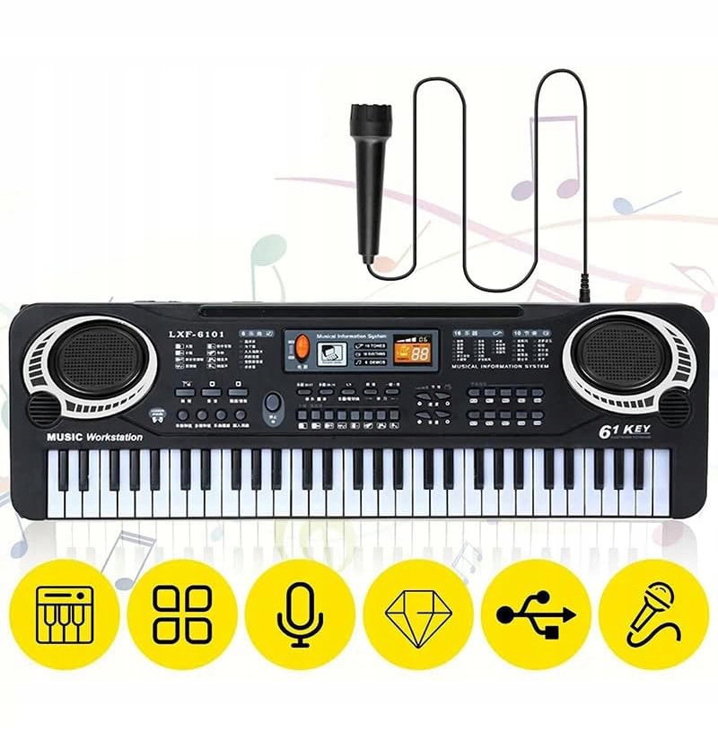 🎹🎹 Нова цифрова музична чорно-біла 61 конструкція електронної клавіатури з гладкими краями та високоякісним світлодіодним дисплеєм.