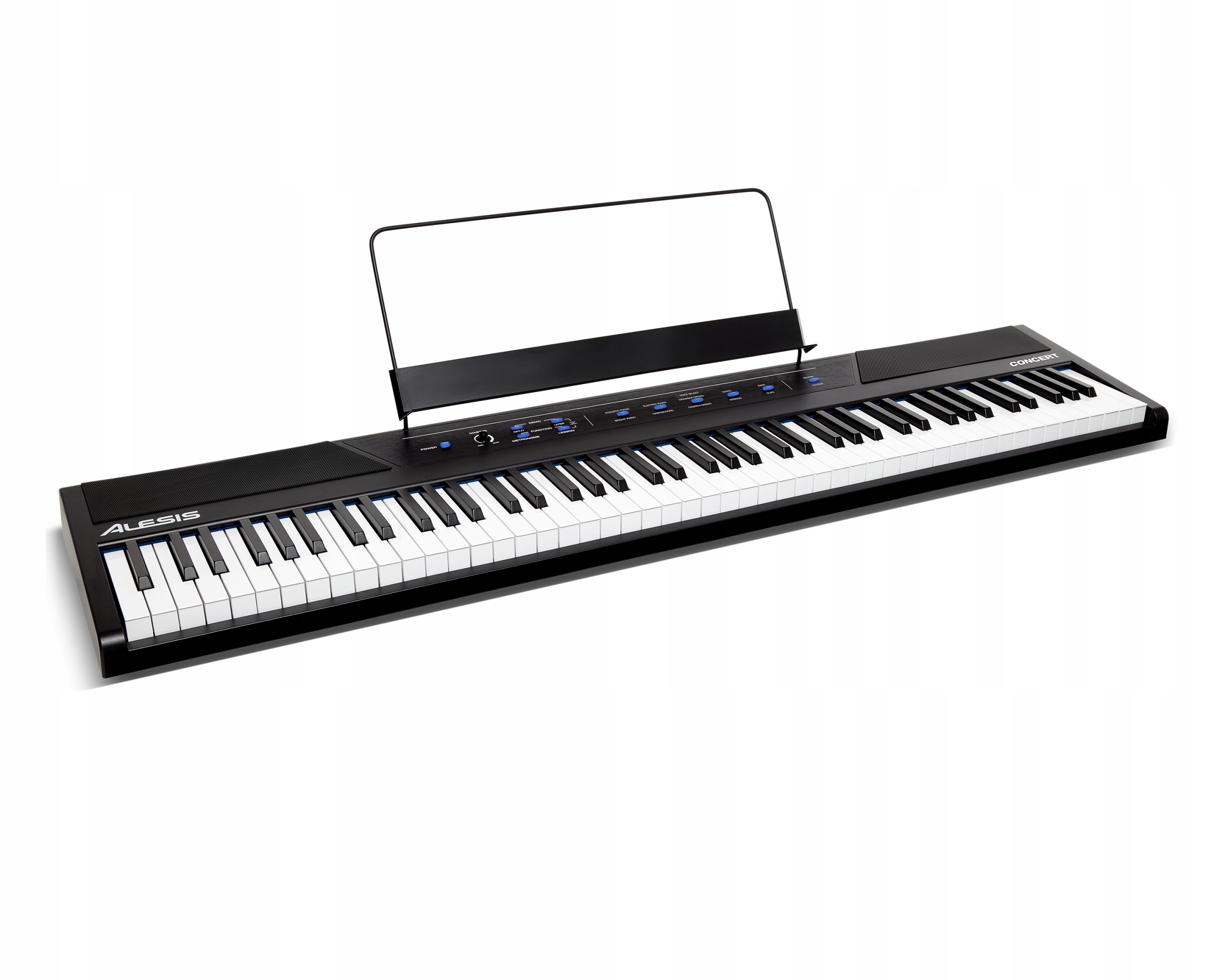 Концерт Alessis -це повністю функціональний цифровий фортепіано з 88 -ти розміром, напівзахищеними клавішами з регульованою реакцією на дотик. Синтезатор, струни, бас та клаві. Їх також можна призначити лише ліворуч або правій руці в розділеному режимі. Ви навіть можете додати регульовану реверберацію та хор, щоб ще більше відрегулювати свій звук. 88