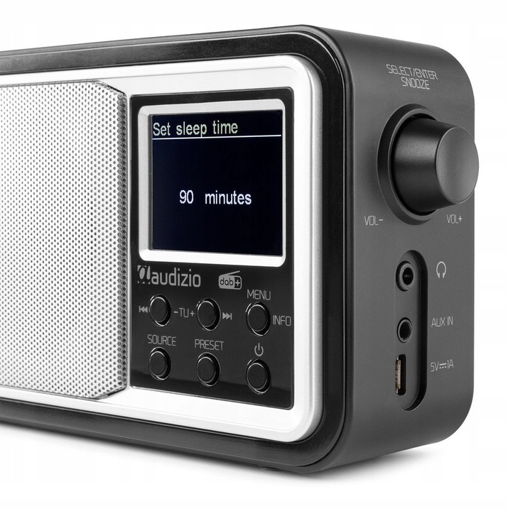 З портативним радіо Parma ви легко матимете улюблену музику під рукою. Ця маленька магнітола виглядає як ретро магнітола, але це чисто зовнішній вигляд. Audizio Parma - це DAB-радіо, DAB+-радіо та FM-радіо, воно також оснащене Bluetooth. Ви можете підключити Parma до порту USB для живлення, але ви також можете вставити в нього батареї, щоб мати портативне радіо з живленням від акумулятора. Завдяки функції будильника та таймеру сну Parma також підходить як радіогодинник. Чіткий кольоровий дисплей відображає необхідну інформацію, таку як станція, виконавець, час тощо, а також забезпечує легке керування радіо. Audizio Parma ідеально підходить для кемпінгу, на човні, у спальні, на кухні чи в офісі тощо.