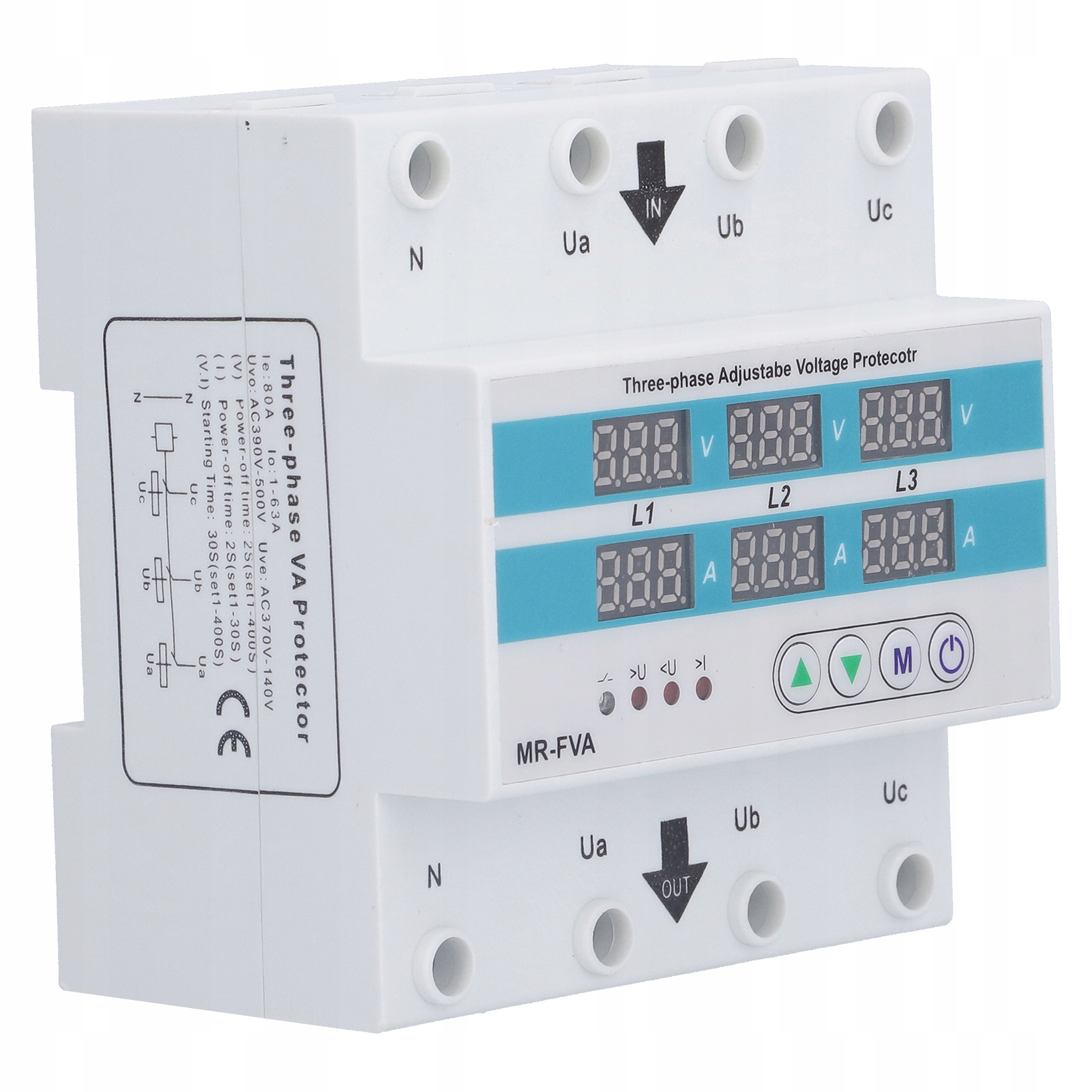 3. Модель протектора MR FVA, номінальна напруга AC220V, номінальний робочий струм 63A, номінальна напруга 50/60Hz.