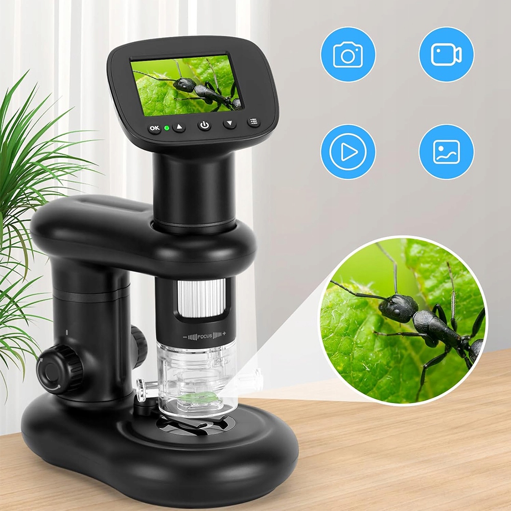 - Підключіть мікроскоп до монітора комп'ютера, щоб отримати більш комфортне спостереження, що робить його ідеальним для використання в школі або для тих, хто цікавиться науковими та екологічними дослідженнями. 4 Відключена підставка та зручна конструкція прості у використанні та підходять для використання на столі, в класі, на вулиці, в парку, а не тільки, надаючи дитині можливість продовжувати наукові пригоди в будь -якому місці.