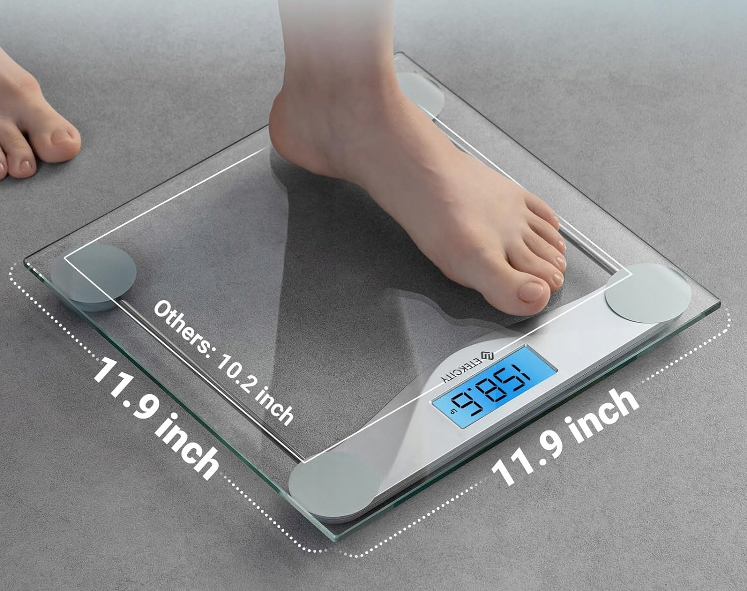 - Велика платформа: зручно стояти на вазі завдяки великій платформі розміром 11,9 x 11,9 дюйма