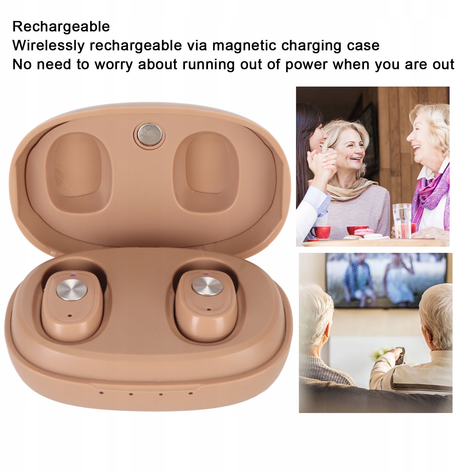 4. Можливість зарядки: Цей цифровий підсилювач слухання може бути заряджений бездротовим шляхом за допомогою магнітного корпусу з функцією зарядки, тому вам не доведеться турбуватися про звільнення, коли ви зовні. 4