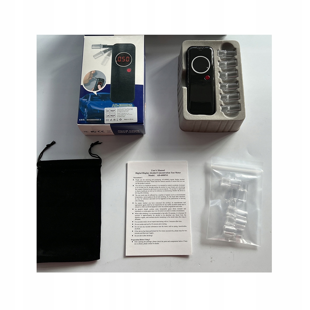 - Алкотестер невеликий і компактний, він оснащений 12 мундштуками, які можна очистити та замінити в будь-який час.< /li>