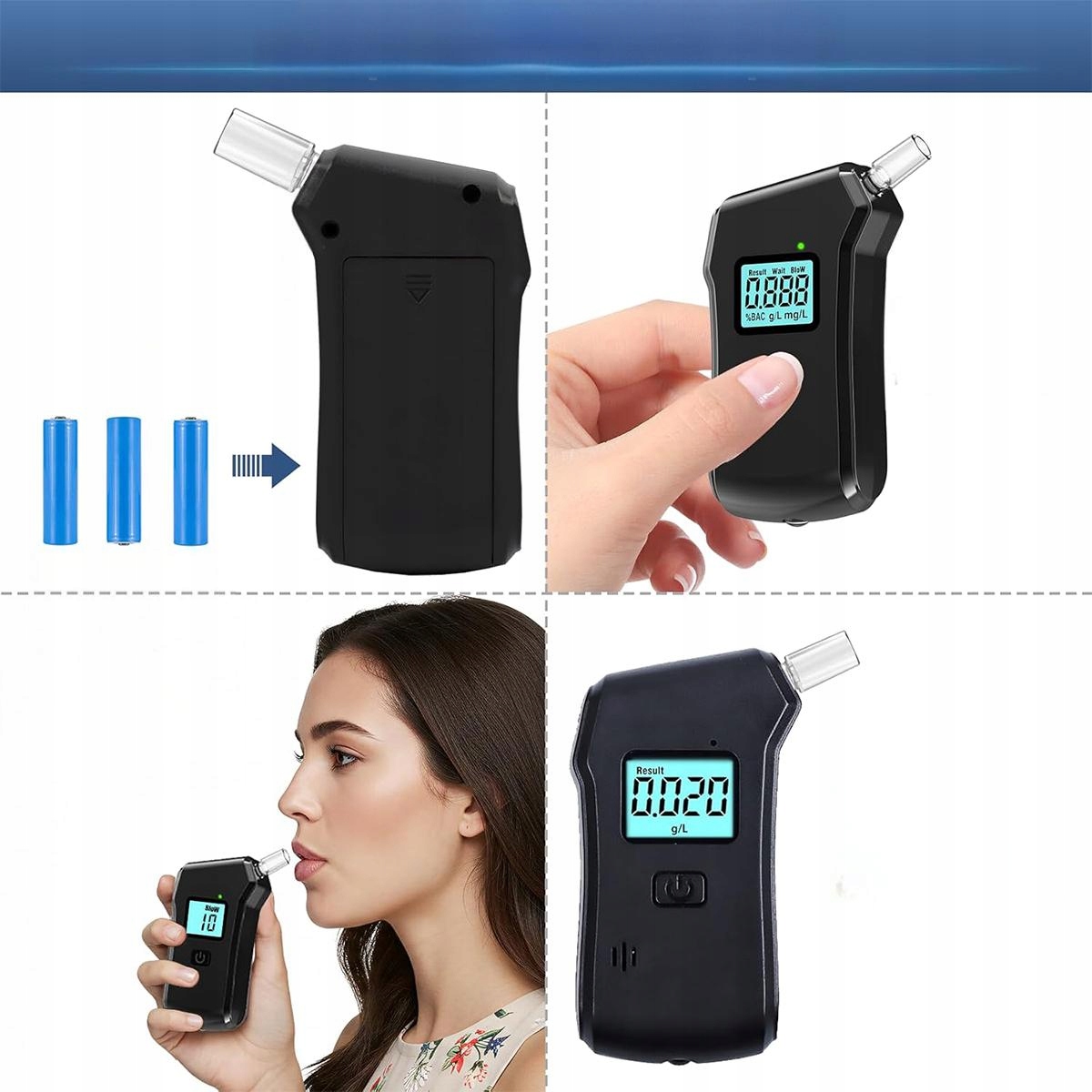 ✅. Простий у використанні: для проведення тесту просто подуйте в пристрій протягом 4-5 секунд. Через 3 секунди після видування результат концентрації алкоголю в крові (г/л) буде чітко відображено на РК-екрані з білим підсвічуванням. Над екраном (на пристрої) є світлодіод, який вказує різний рівень алкоголю різними кольорами: безпечний низький зеленим (менше або дорівнює 0,29 г/л), граничний жовтим (від 0,30 г/л до 0,49 г/л) і вище ліміту червоним (дорівнює або перевищує 0,5 г/л).