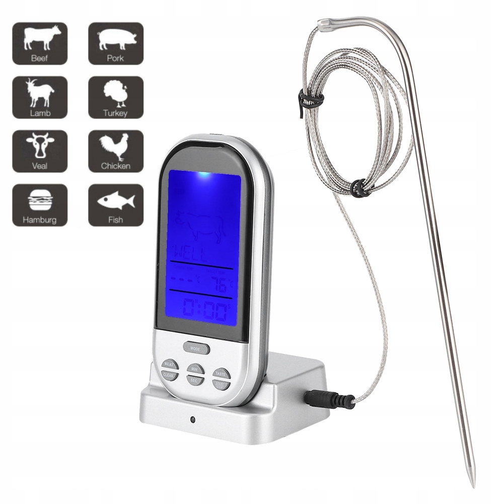 2. Він підтримує широкий вибір м'яса, включаючи яловичину, ягня, курку, рибу, свинину, індичку, гамбургери та телятину, завдяки якому кожен гриль легко контролювати цей термометр гриля з цим термометром.
