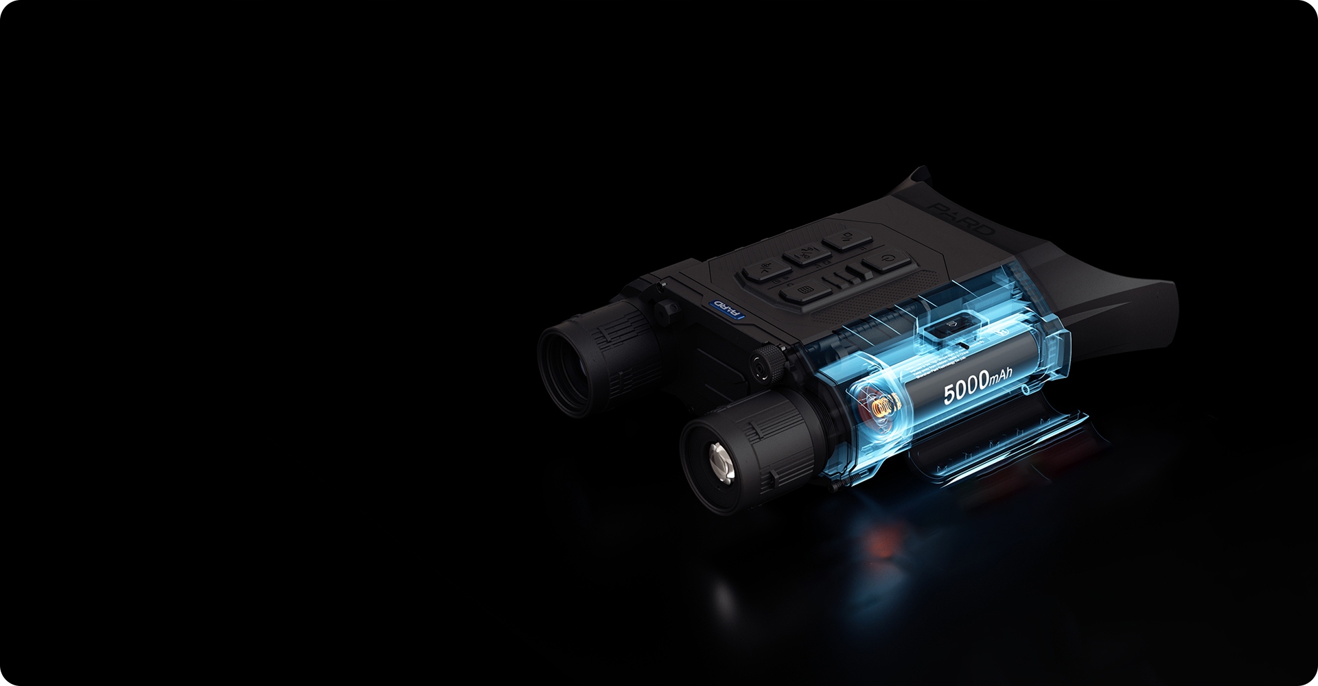 Бінокль живиться від ефективної літій-іонної батареї 21700 ємністю 5000 мАг, яка забезпечує до 6 годин безперервної роботи. Можливість заряджання через порт USB-C і сумісність із акумуляторами живлення роблять пристрій ідеальним компаньйоном для нічних спостережень або тривалих поїздок.