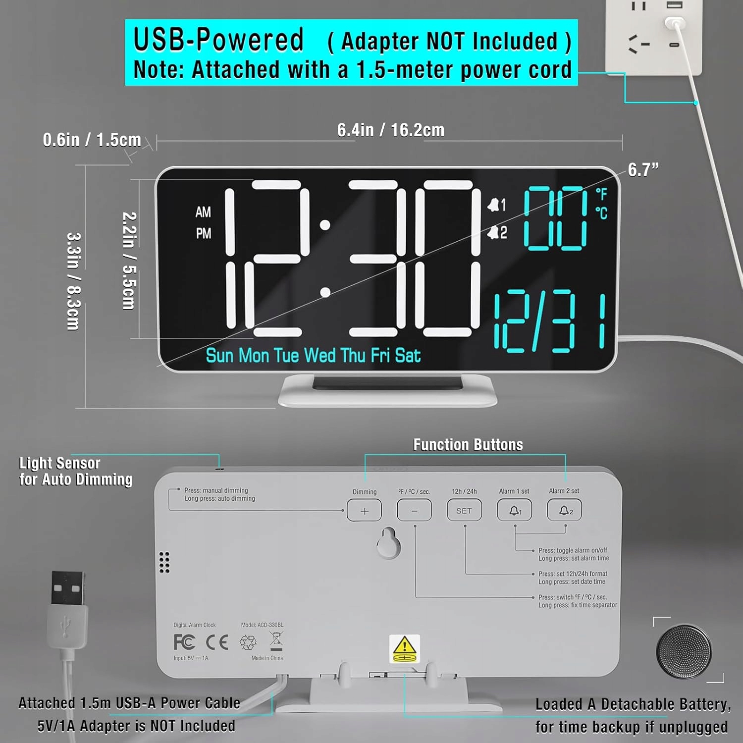 Автоматичне/ручне затемнення: білий годинник цифровий має автоматичне затемнення та