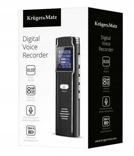 ЦИФРОВИЙ ДИКТОФОН 8 ГБ ДАТЧИК ВИЯВЛЕННЯ ЗВУКУ Kruger&Matz KM0286
