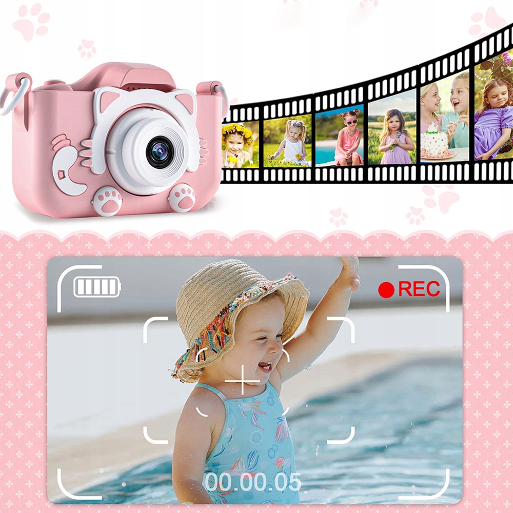 ЦИФРОВИЙ ДИТЯЧИЙ ФОТОКАМЕРА, ДИТЯЧА ФОТОГРАФІЯ, РОЖЕВЕ КОШЕНЯ + КАРТА 16ГБ
