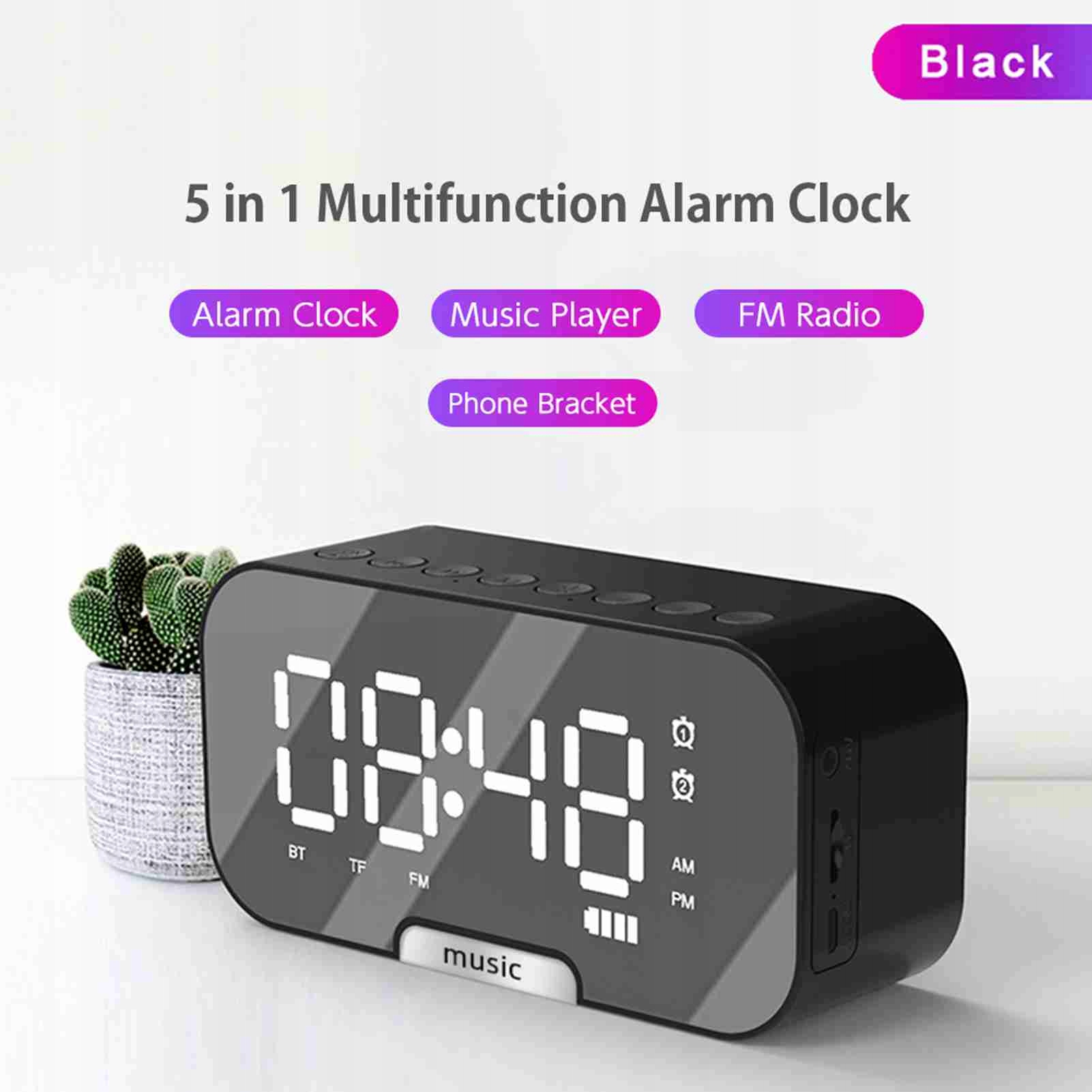 - Багатофункціональний пристрій 4 в 1: будильник, музичний плеєр, FM-радіо та кронштейн для телефону. Дзеркальний дизайн і великі білі шрифти роблять будильник вражаючим і красивим.