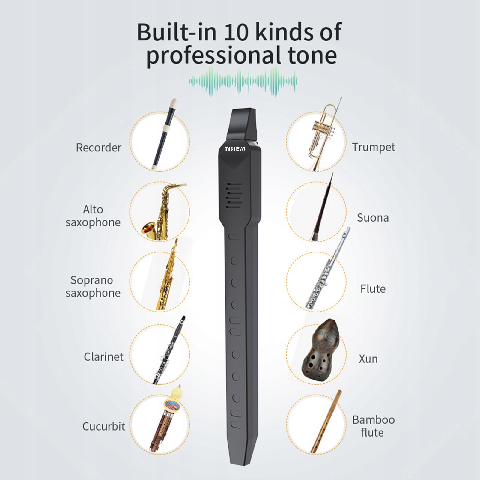 bt цифровий електронний вітровий інструмент служби акарування 10 тонів Регульована чутливість до дихання Зовнішні навушники або з'єднання з додатком динаміків