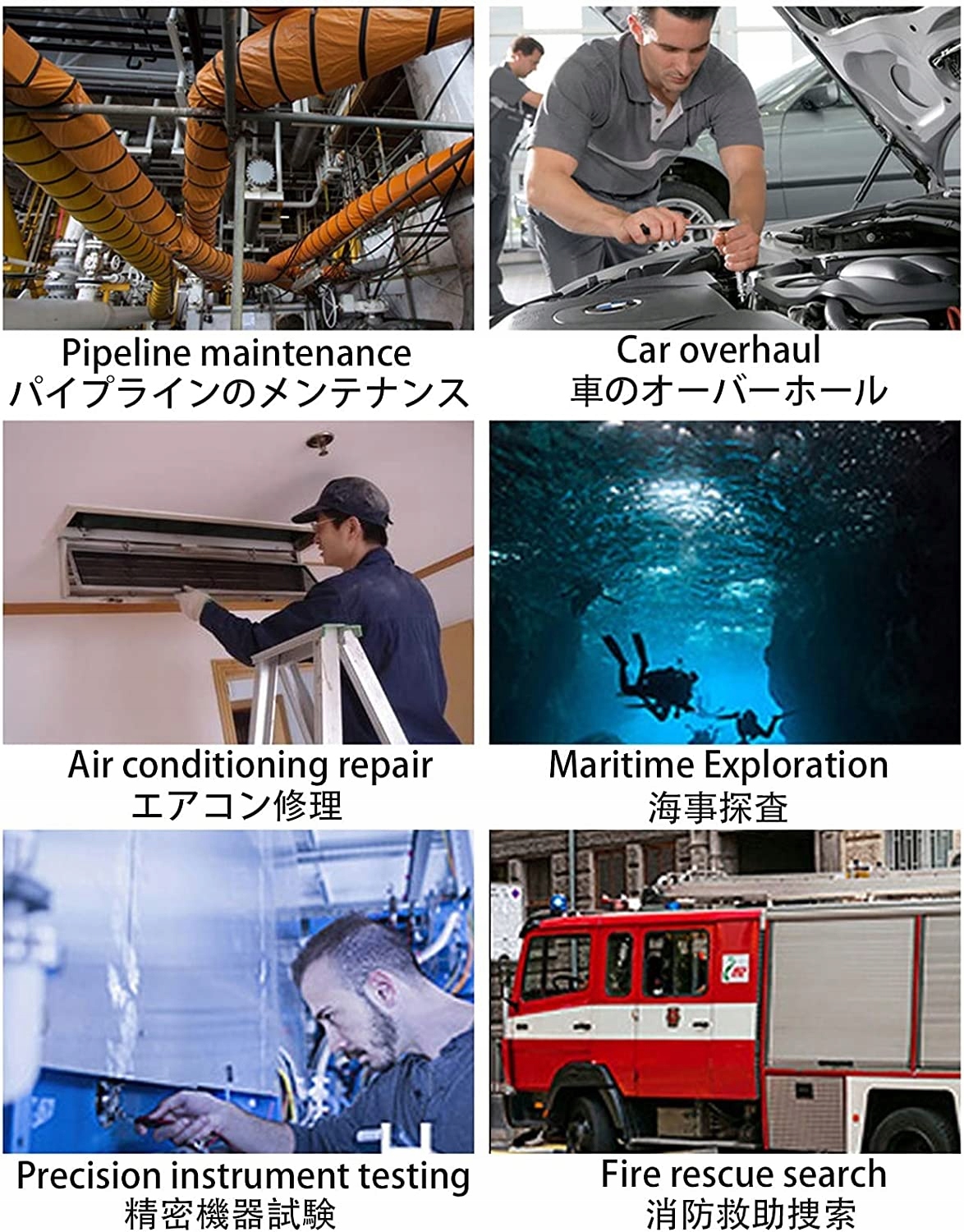просте бездротове налаштування Бездротову інспекційну камеру бороскопа можна легко підключити до вашого смартфона через WIFI без використання додаткових адаптерів або кабелів. Для отримання додаткової інформації зверніться до посібника користувача. Високоякісна камера-змія. Водонепроникна бездротова ендоскопічна камера IP68, оснащена 8 регульованими світлодіодами на передній панелі камери, які можуть значно покращити яскравість і різкість зображення навіть у затемнених або темних місцях. Широка сумісність На відміну від інших ендоскопів, камера ендоскопа Wi-Fi не тільки сумісна з системами Android і iPhone IOS, але також може використовуватися з системами Windows через USB-кабель, який підходить для комп’ютерів і планшетів Android. Міні-39-міліметровий бездротовий бороскоп. Наша бездротова промислова ендоскопічна камера обладнана надкомпактним 39-міліметровим об’єктивом, що робить її ідеальною для огляду місць, невидимих неозброєним оком, або труб. Широкий спектр застосування Широко використовується в ремонті автомобілів Перевірка машин Ремонт трубопроводів Побутова техніка Перевірка утримання квартир Перевірка стінових конструкцій Перевірка дренажу тощо.