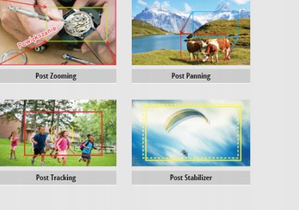 Завдяки функції Smooth Zoom ви можете плавно збільшувати масштаб без розмиття. Також легко збільшити об’єкт, який не знаходиться в центрі, не змінюючи кут огляду камери. Також насолоджуйтесь плавним і точним панорамуванням, просто вибравши початкову та кінцеву точки. Ви можете вибрати особу, яку потрібно відстежувати, із відео, і камера автоматично утримує об’єкт у кадрованій області. Навіть після того, як ви закінчите зйомку, ви можете компенсувати тремтіння, автоматично відрегулювавши положення кадрування. Результат – більш стабільне та чітке відео. Примітка: матеріал зберігається в режимі MP4 1080/25p.
