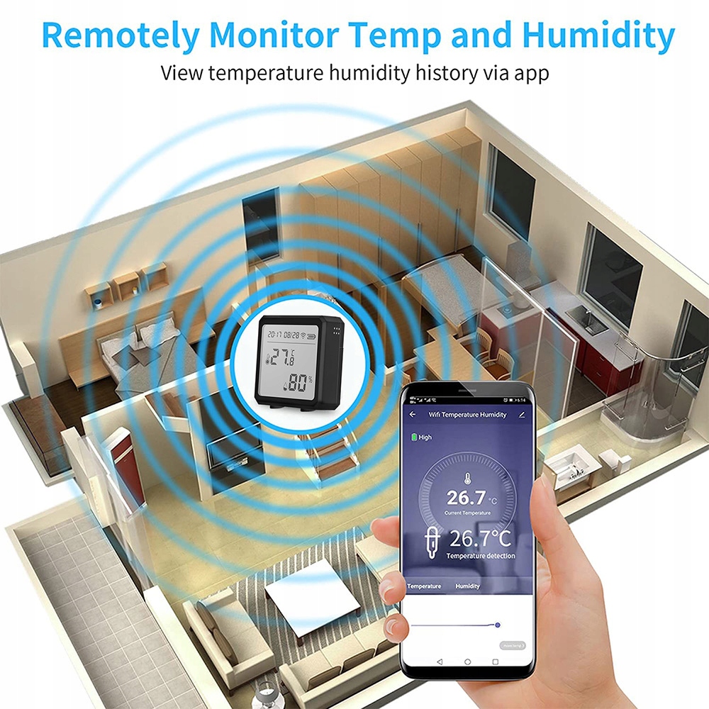 Віддалено переглядайте вологість температури, не потрібен концентратор: використовуйте мережу Wi-Fi 2,4G, легко налаштувати, переглядайте вологість температури в ДОДАТКУ "smart life" у будь-який час і будь-де p>