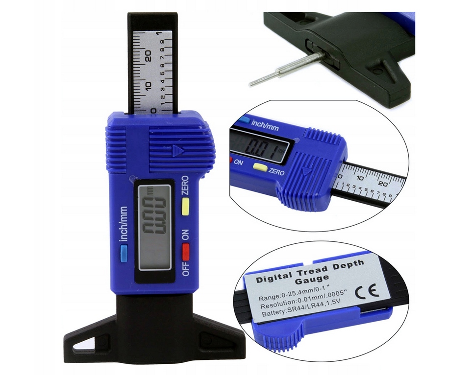 Цифровий вимірювач глибини протектора, необхідний для оцінки ступеня зносу шин. Лічильник необхідний для шиномонтажу та автосервісів, потрібен кожному авто. Він використовується, серед іншого, для вимірювання протектора, глибини різьби та зносу гальмівних колодок.