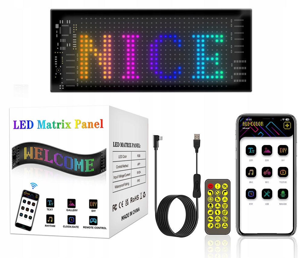 【Ясний і яскравий】 Програмований світлодіодний позначка використовує 3528 RGB моделей бісеру, дисплей чіткий і яскравий, легко побачити повідомлення на дисплеї. Анімація, щоб збагатити дисплей. Традиційний світлодіод, світлодіодний маркування є тонким і легким, гнучким дизайном пластини, може бути вільно зігнутим, вдосконаленою технологією напруги 5 В, дуже низьким теплом. Хеллоуїн, вечірки, дні народження тощо