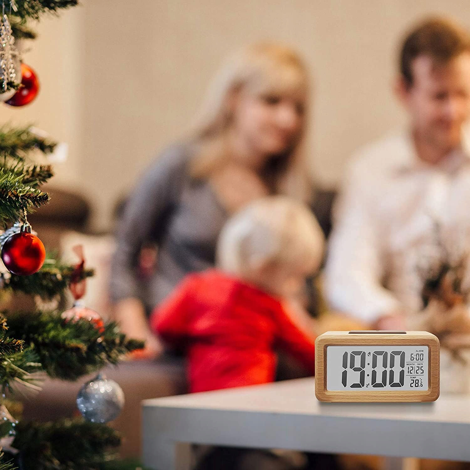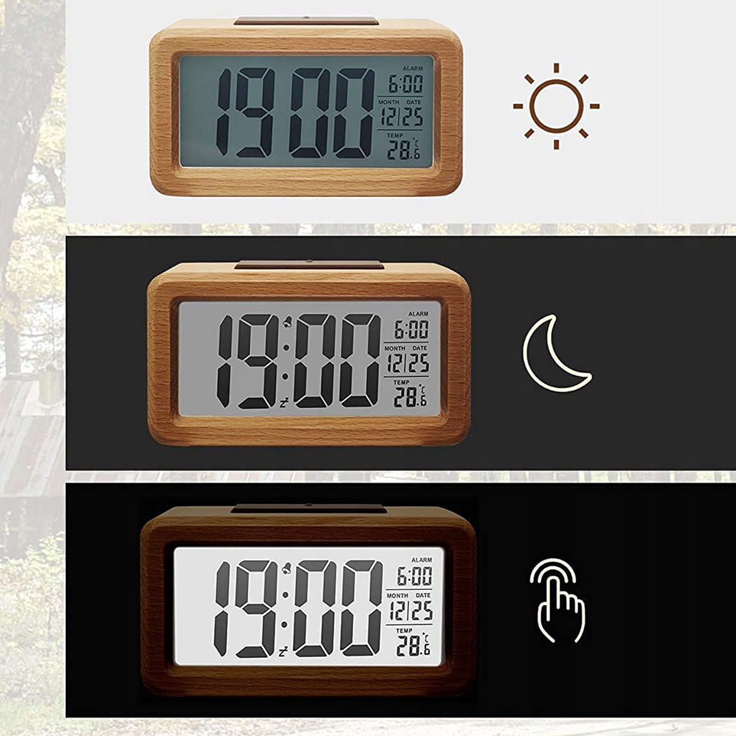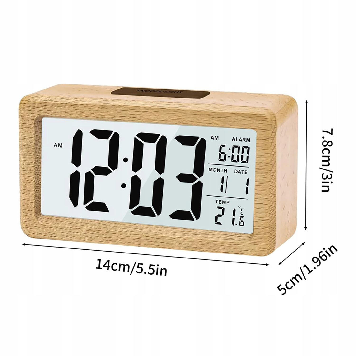 Цифровий годинник із підсвічуванням, тверда дерев’яна будильник