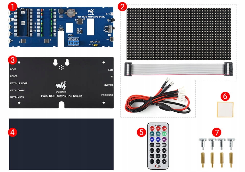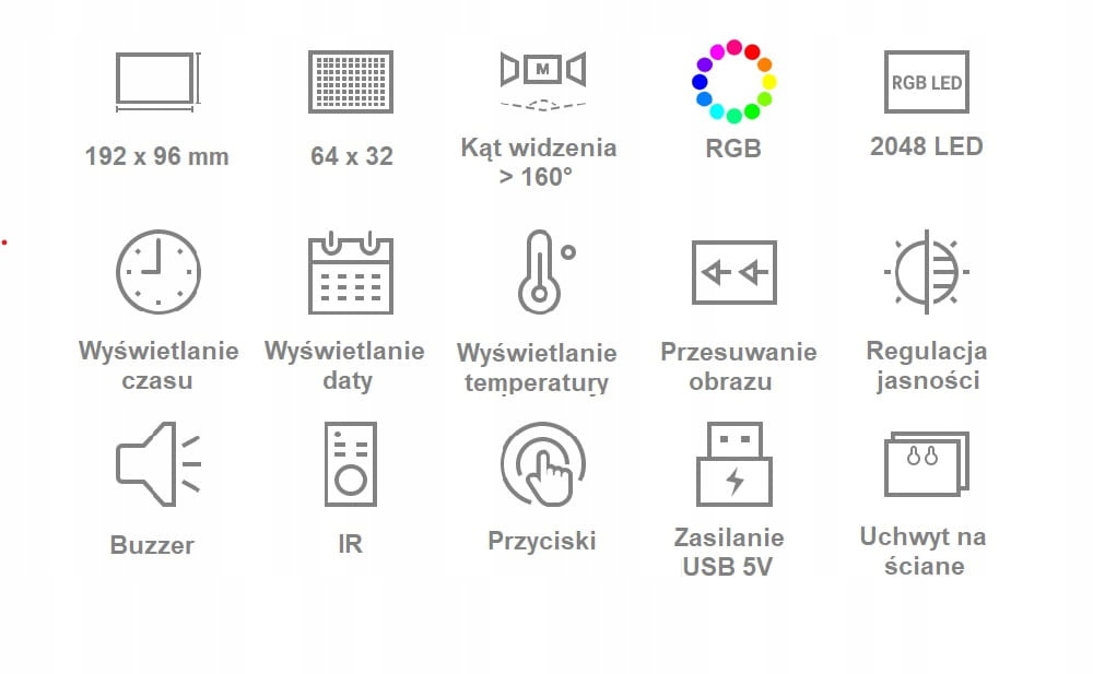 - Роздільна здатність: 64 × 32 (2048 світлодіодів)