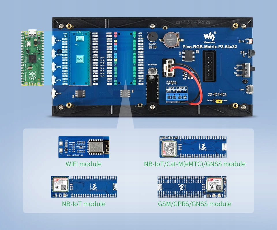 Багатофункціональний повнокольоровий цифровий годинник RGB для Raspberry Pi Pico, сітка 64×32, точний час реального часу