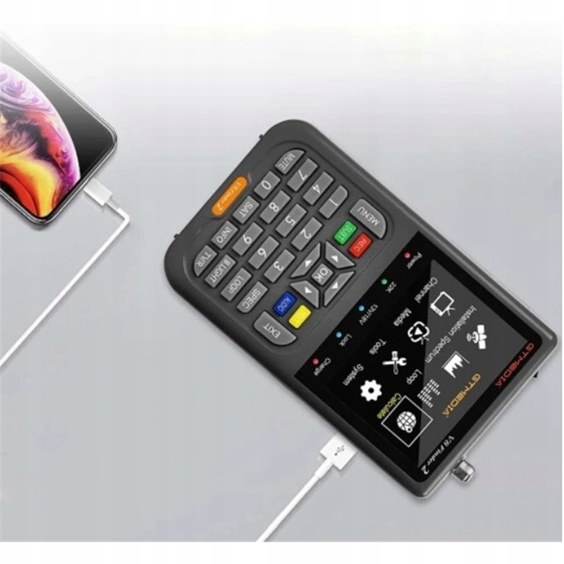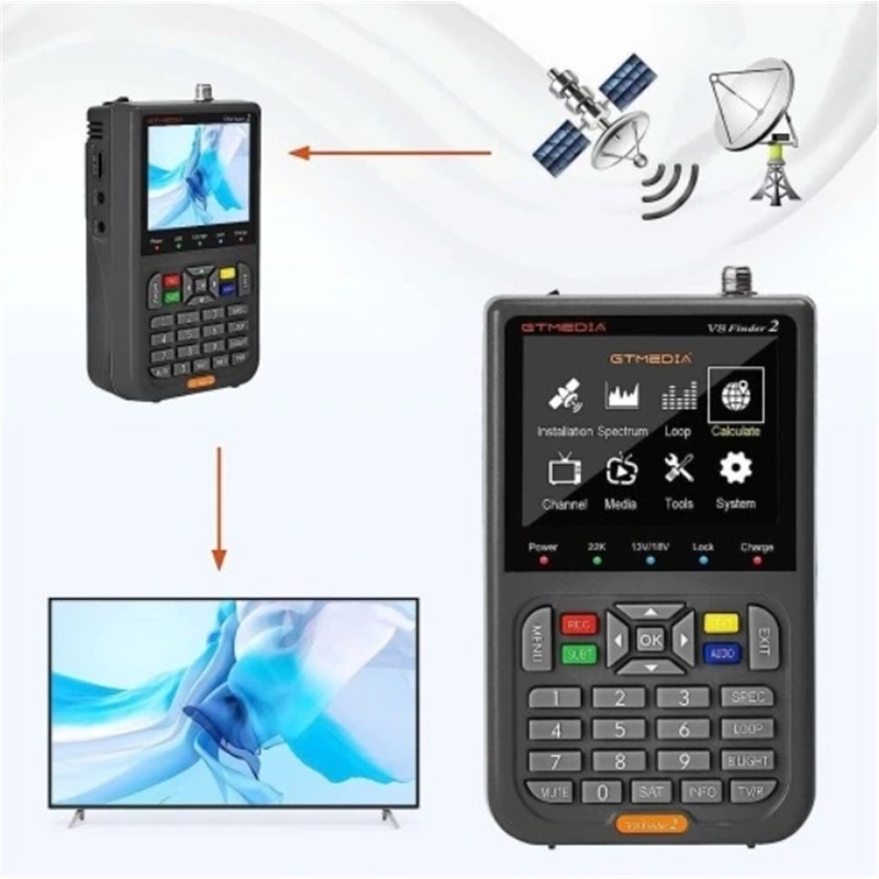 - V8 inder2 DVB-S2X-приймач сигналу-це ручний локатор сигналу, сумісний з DVB-S/S2/S2X та MPEG-2/4 H.264 (8-бітний).