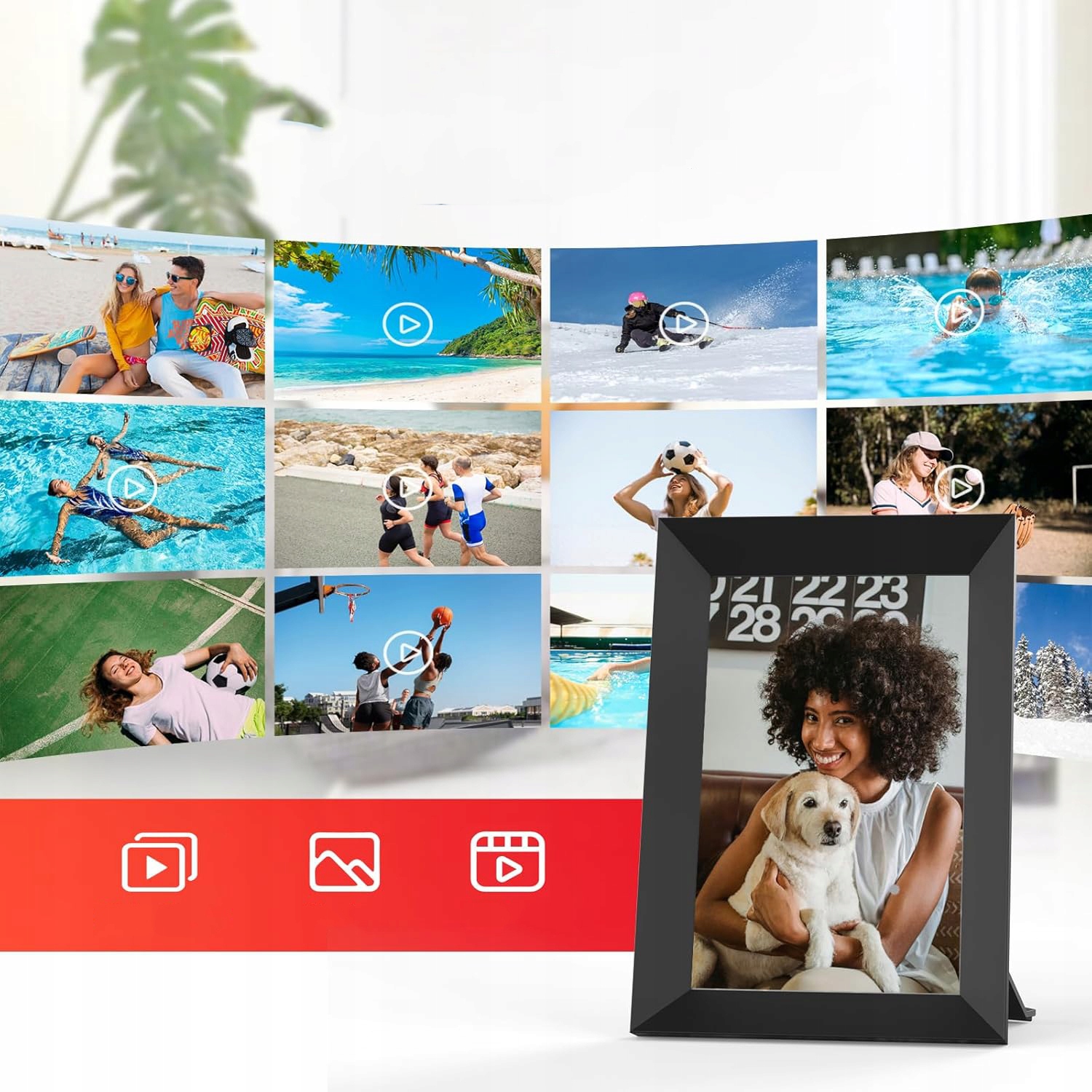 - Інтелектуальна фоторамка HD з діагоналі 10,1 дюйма оснащена високоякісним сенсорним екраном IPS з роздільною здатністю 1280 x 800, що представляється Фотографії та відео з цифровим фотоальбомом з винятковою виразністю та яскравими кольорами.