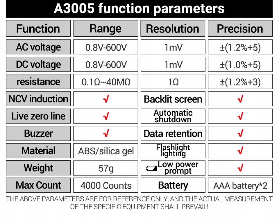 Aneng A3005 виготовлено з високоякісних матеріалів, включаючи стійкий до пошкоджень АБС.