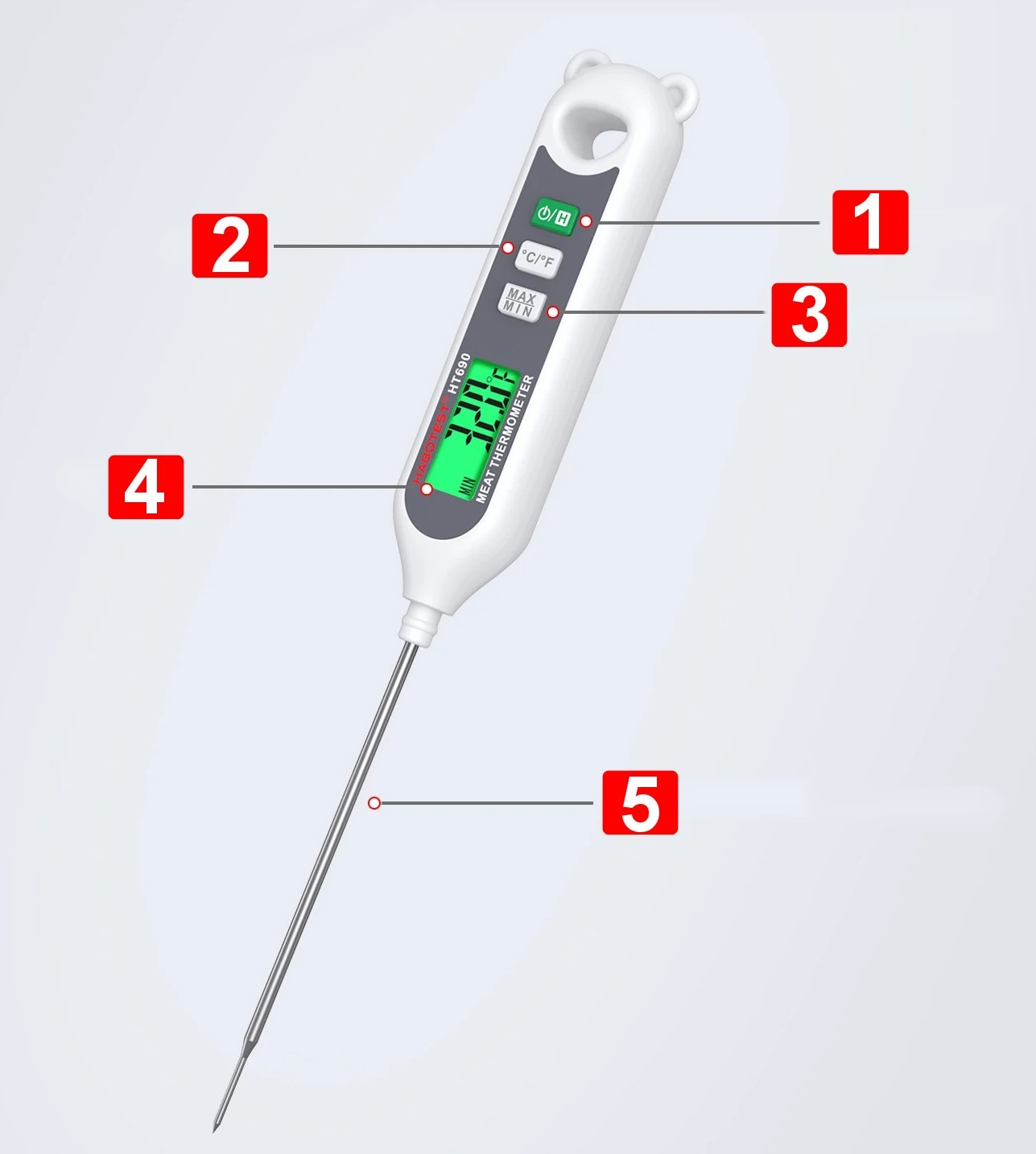 Завдяки цьому пристрою ви можете перевірити температуру страв, які ви готуєте точно. Він ідеально підходить для м'яса, тортів, температури рідини та всіх інших страв, напоїв.