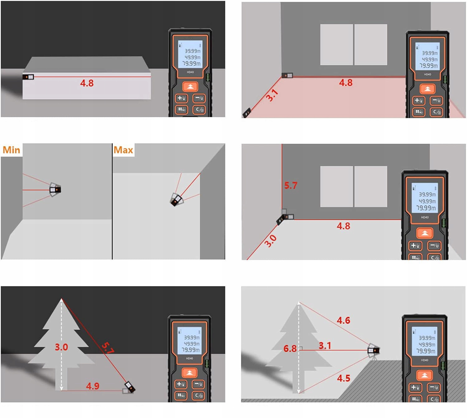 Лазерний далекомір — це вдосконалений вимірювальний прилад для приміщень, який також використовується в будівельних проектах на відкритому повітрі та має різні режими вимірювання, які можна налаштувати відповідно до ваших потреб. потреби .