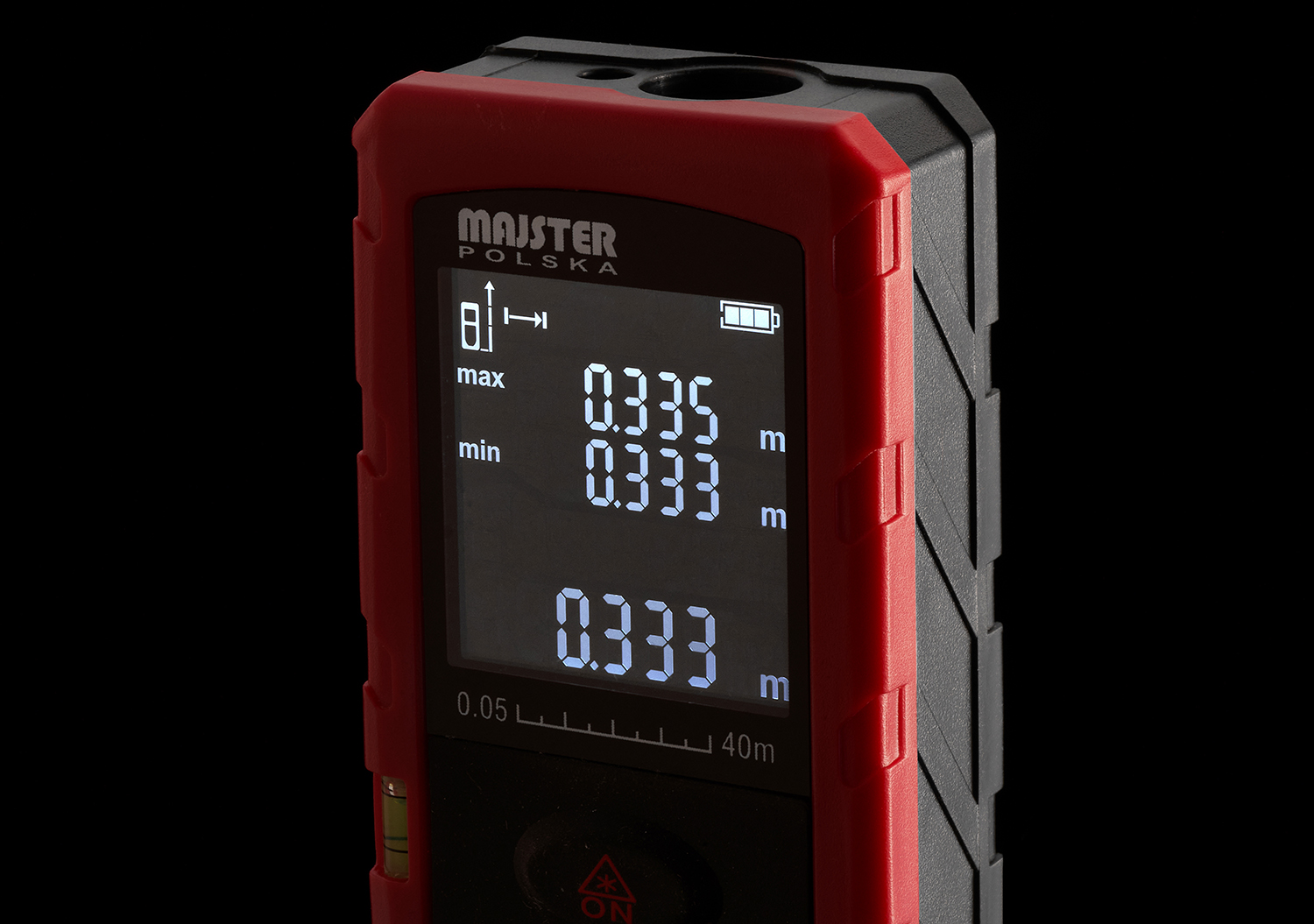 Дозволяє вимірювати відстані від 0,05 до 40 м, а точність вимірювання становить +/- 1,5 мм. Крім того, він має функцію вимірювання поверхні вимірюваного об'єкта, його об'єму та висоти. b>