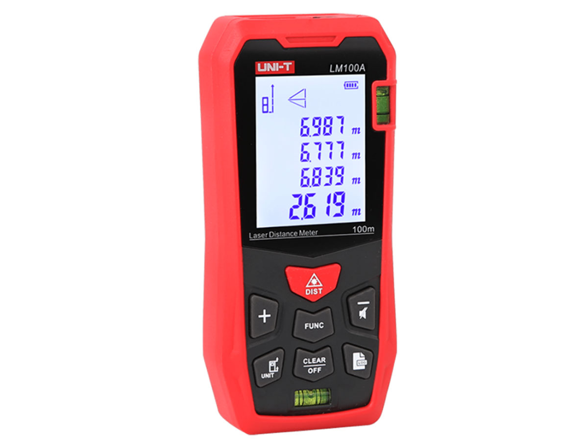 LM100A – це дуже точний і економічний лазерний далекомір. Радіус дії лічильника становить 100 метрів з точністю 2 мм. Червоний лазер, що випромінюється з передньої частини пристрою, є лазером класу 2 і простим у використанні, він має функцію вимірювання відстані, площі та об’єму. Підсвічування екрана, одноразова або безперервна робота та функція автоматичного вимкнення роблять глюкометр простим і приємним у використанні.