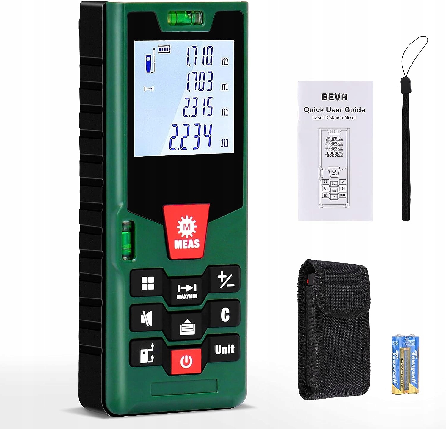 Зберігання даних: цей лазерний вимірювальний інструмент підтримує збереження даних і функцію прозорості даних. Лазерний вимірювач відстані з подвійним ін’єкцією забезпечує довговічність і хорошу конструкцію, нековзкий гумовий матеріал по краях забезпечує міцне захоплення Зручний і точний: портативний лазерний вимірювач відстані зручний для точного вимірювання відстані, площі та об’єму, особливо у великих приміщеннях, таких як квартири , будівлі, нерухомість, фабрики, склади, сади тощо