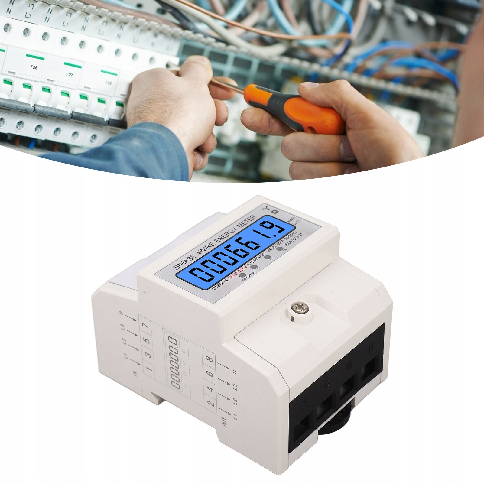 4. ВСТАНОВЛЕННЯ НА ТРИФАЗНУ РЕЙКУ 4P: Цифровий трифазний рідкокристалічний електричний лічильник з DIN-рейкою 35 мм простий в установці та може бути встановлений у розподільній шафі, шафі керування та частині розподільного щита без розподільного щита