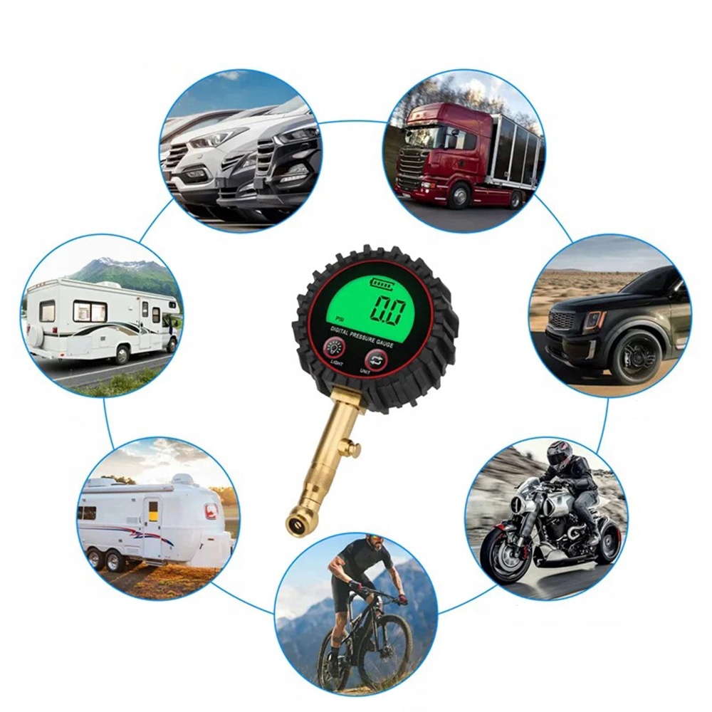 Цифровий манометр у шинах – надійний, точний і простий у використанні, ідеально підходить для власників легкових автомобілів, вантажівок, позашляховиків, мотоциклів і велосипедів.