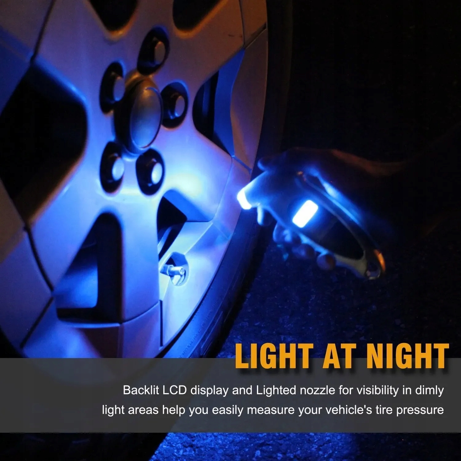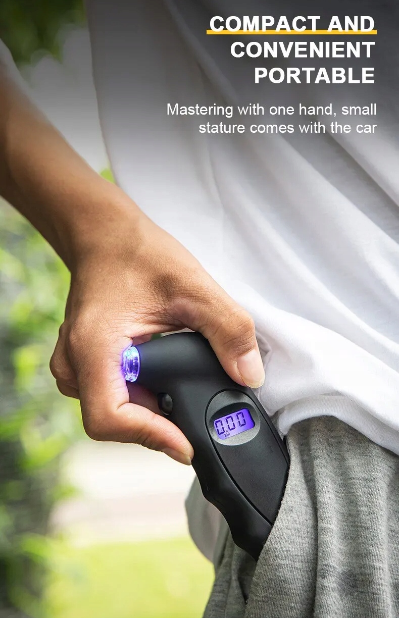 Цифровий манометр у шинах із РК-дисплеєм для точного й повторюваного вимірювання тиску в шинах. Можливість відображення вимірювання в одиницях PSI, бар, кПа, кг/см2
