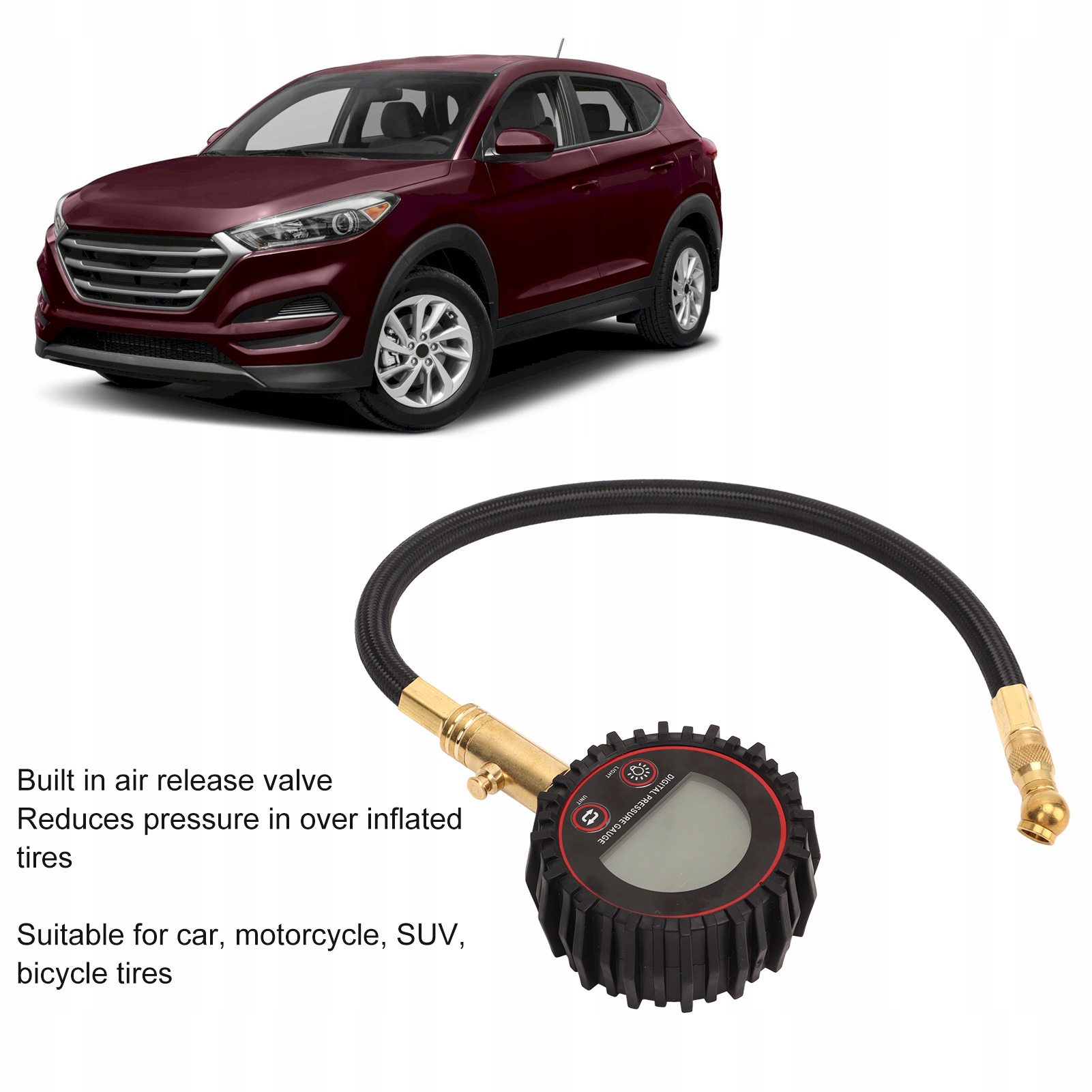- Просто під’єднайте його до вентиля шини, і точне вимірювання миттєво відобразиться.