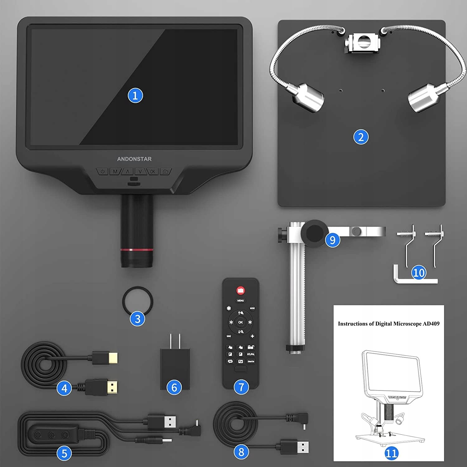 Andonstar AD409 Pro - цифровий мікроскоп з РК-дисплеєм 10,1"