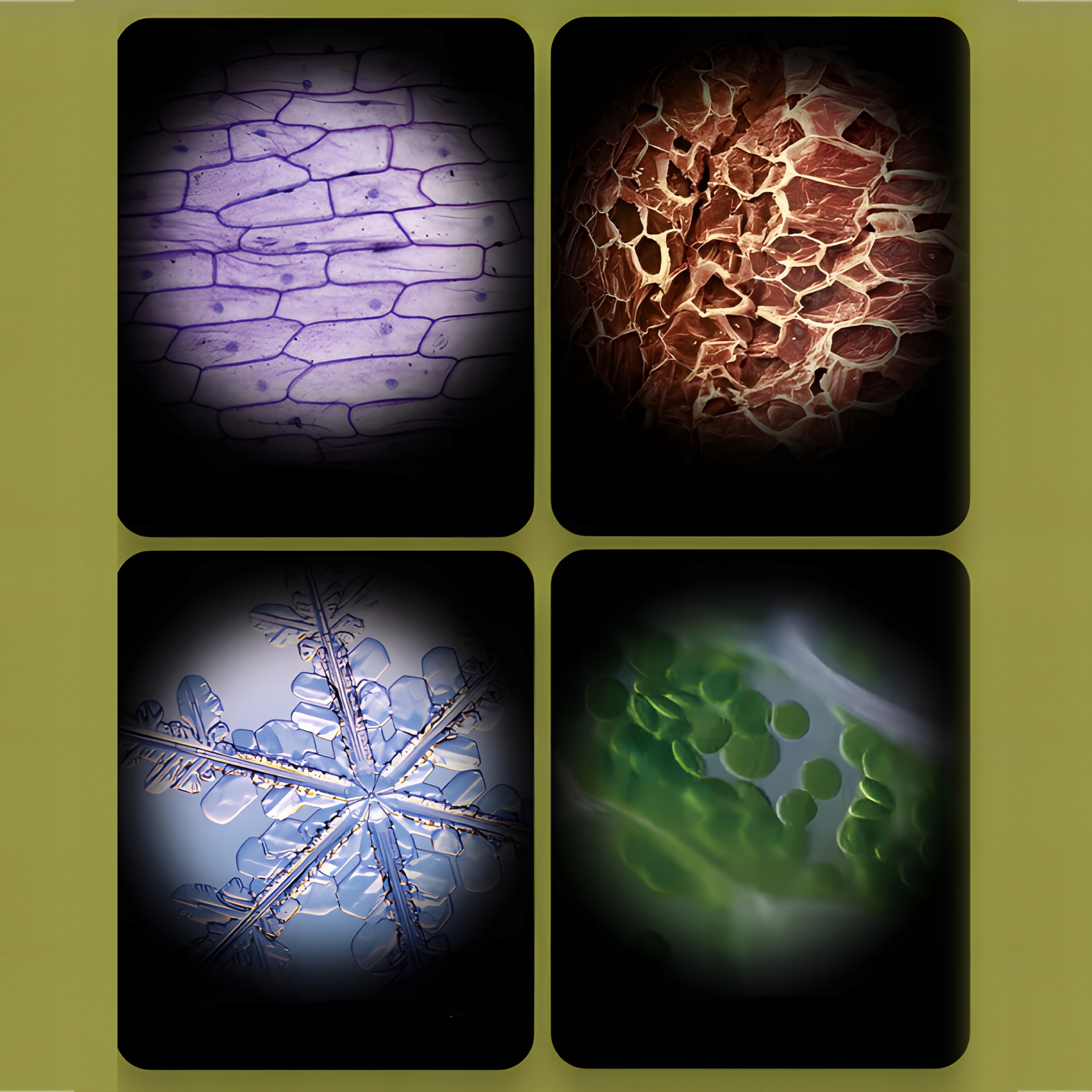 збільшення до 1200x дозволяє виявити деталі, які повністю невидимі для неозброєного ока. Завдяки цьому дитина може навчитися захоплюючим структурам та формам мікро світу.