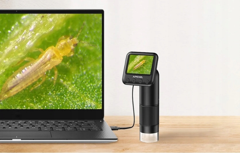 - Портативний кишеньковий мікроскоп: легко поміщається в кишені, важить близько 130 г, має, серед іншого, 75-градусний екран, літієву акумуляторну батарею (яка може безперервно працювати 4-5 годин) і затемнення. Використовуйте цей портативний електронний мікроскоп, щоб дізнатися більше про мікроскопічний світ.