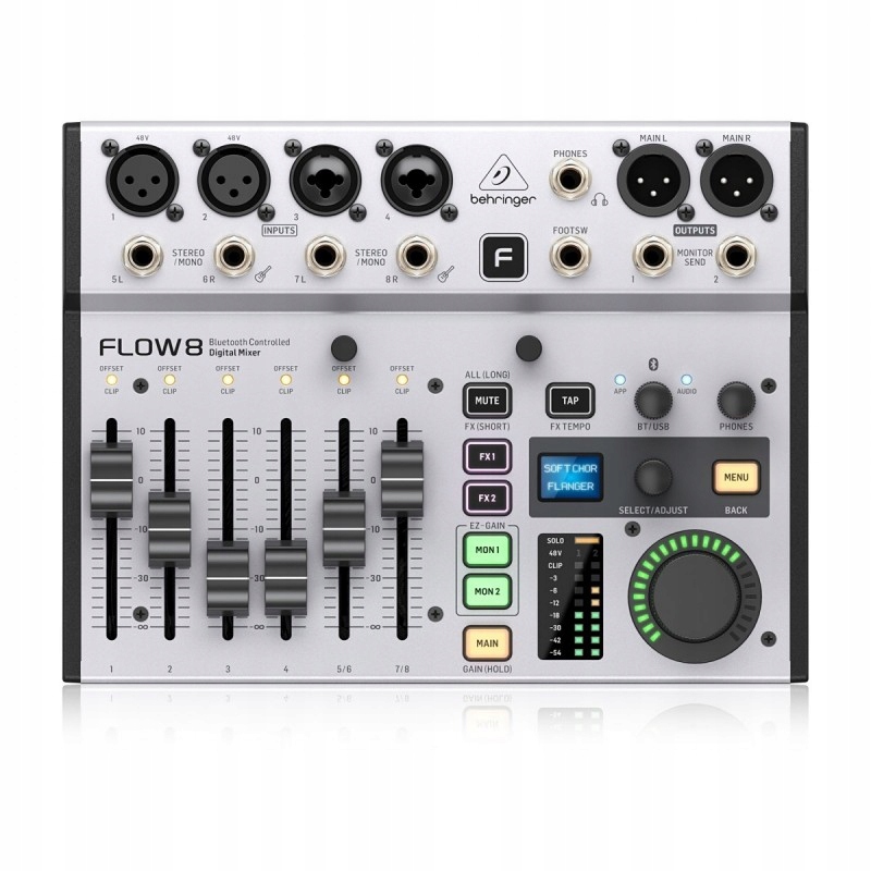 8-канальний цифровий мікшер із потоковим передаванням через Bluetooth, додатком для дистанційного керування, 60-міліметровими фейдерами, 2 процесорами ефектів та аудіоінтерфейсом USB.