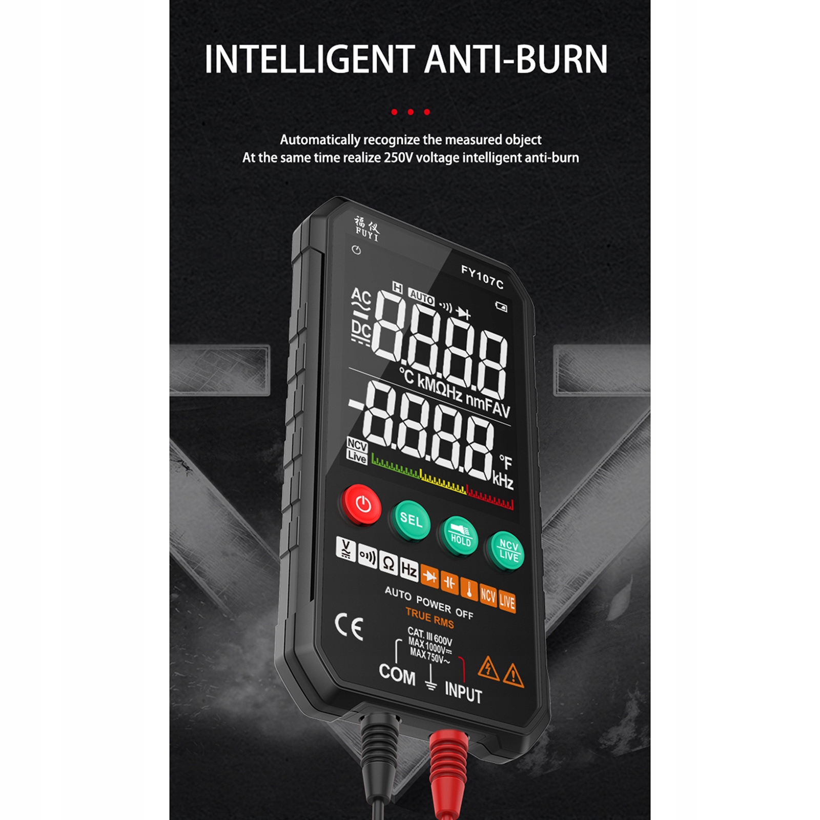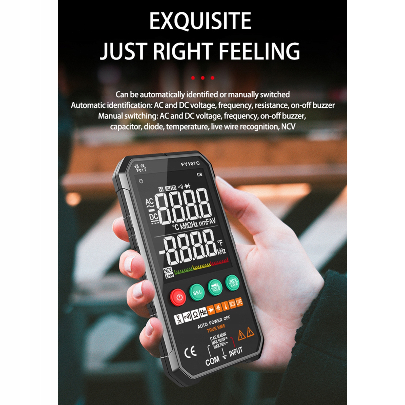 Вимірювання температури: цей продукт також має функцію вимірювання температури К-типу (входить у комплект), яка зручна для користувачів для вимірювання температури різних рідин або газів. Діапазон вимірювань дуже широкий, найнижча температура вимірювання може досягати -20 ℃ (-4 ℉), найвища 1000 ℃ (1832 ℉). (для FY107C).