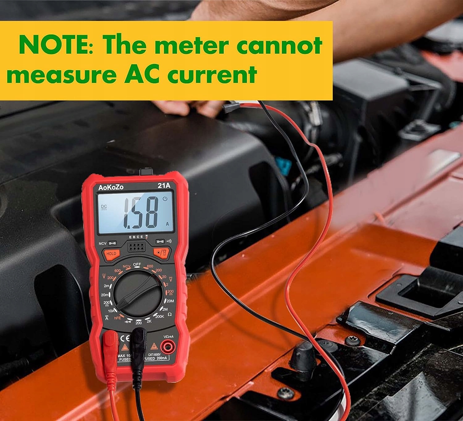 Напруга змінного струму, напруга постійного струму, постійний струм (не для змінного струму), діод, транзистор, провідність, опір. Може діагностувати електричні проблеми в автомобільній, промисловій та побутовій техніці.