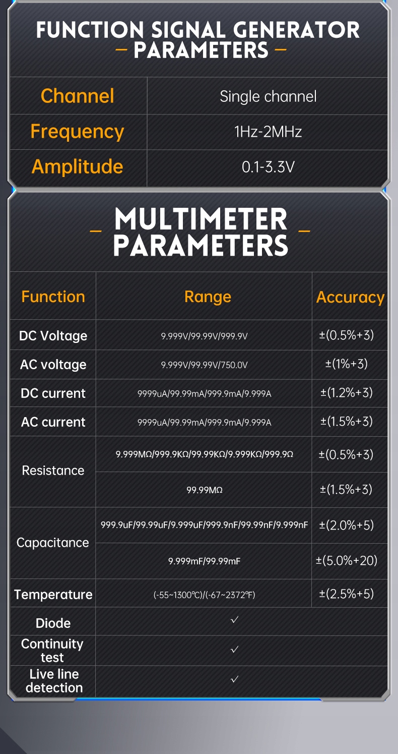 Мультиметр Fnirsi 2C23T 3-в-1 оснащено багатьма функціями, які роблять його надзвичайно корисним пристроєм у діагностичній роботі, наприклад: