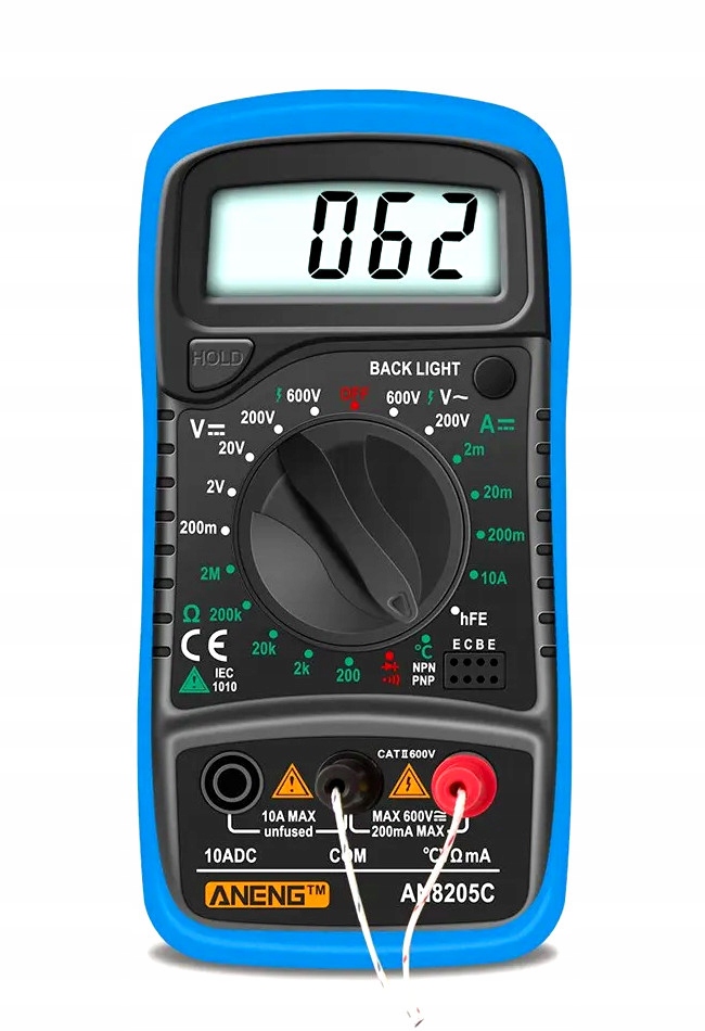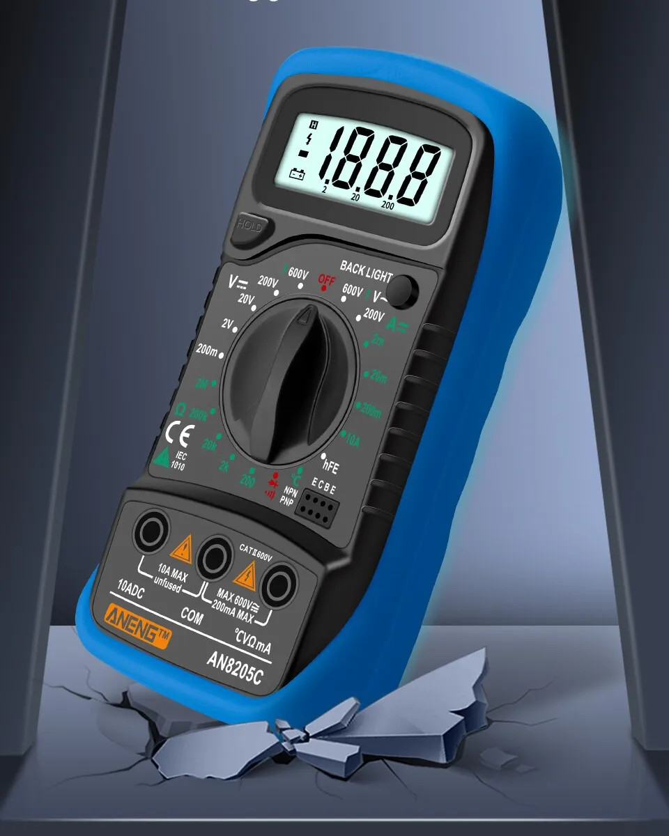 Необхідна електроніка - універсальний цифровий мультиметр. Aneng AN8205C – це легкий, маленький, зручний мультиметр із екраном із підсвічуванням, який дозволяє вимірювати: