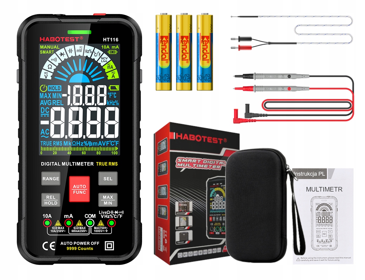 Habotest HT116 – інтелектуальний мультиметр зі справжнім RMS | 9999 відліків | Автодіапазон | NCV | Термометр | Світлодіодний ліхтарик