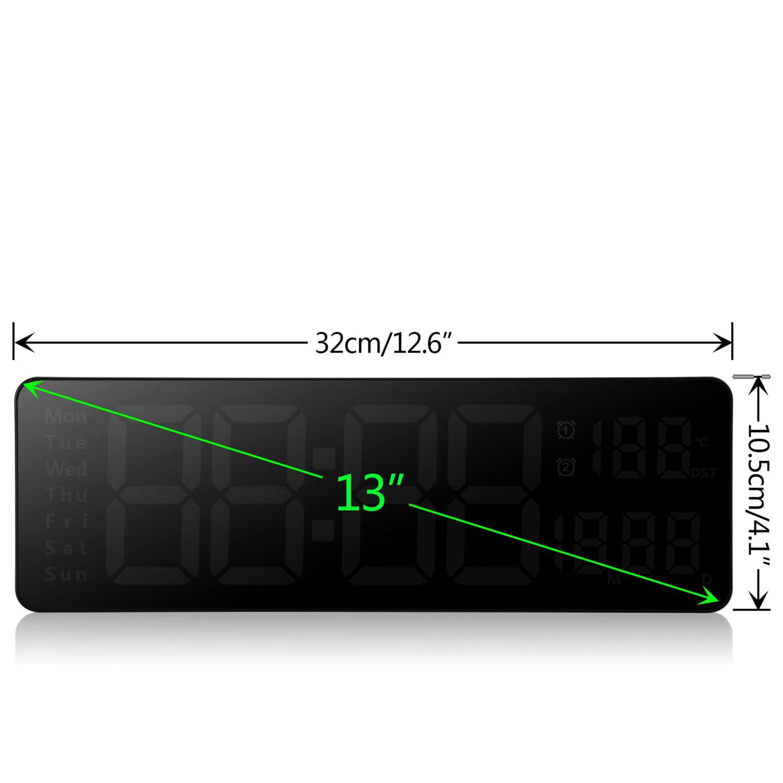 ✨ Великий цифровий світлодіодний годинник з пультом дистанційного керування - 13 дюймів, багатофункціональний дисплей, функція таймера/відліки!
