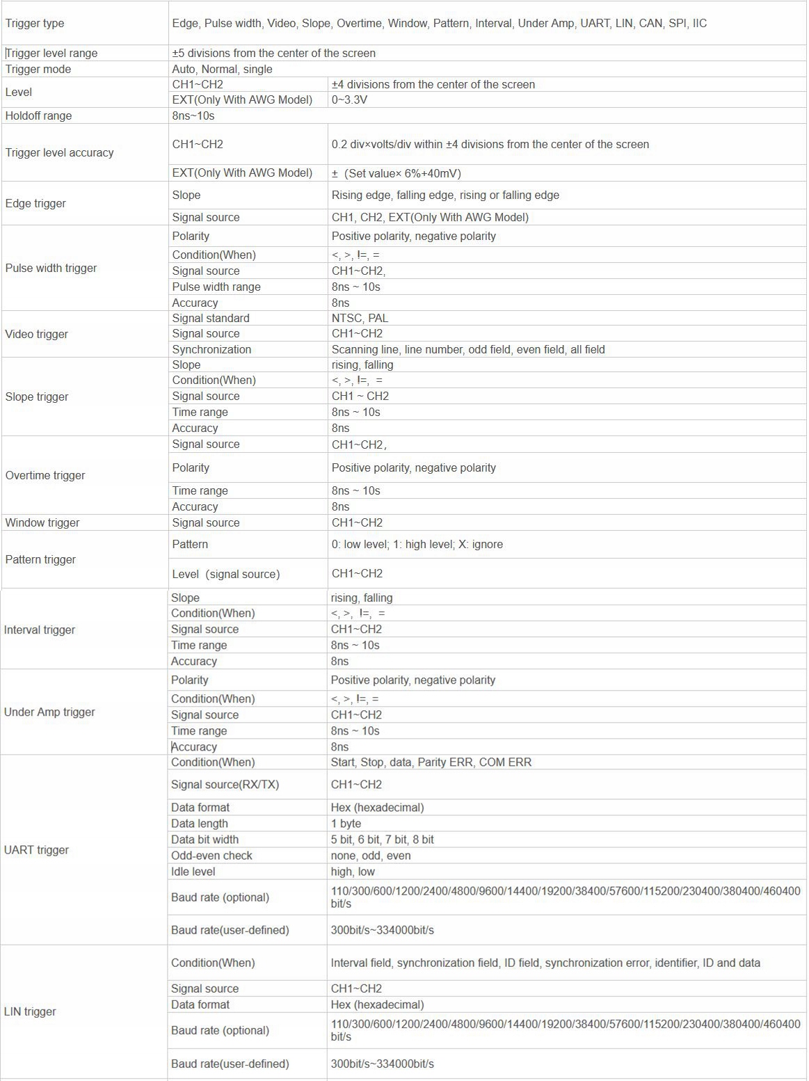 7) vertical; 8) Liberator: Edge, Pulse, Video, Slope, Overtime, Window, Pattern, Interval, UNDER AMP, Uart, Lin, Can, SPI, Iic
