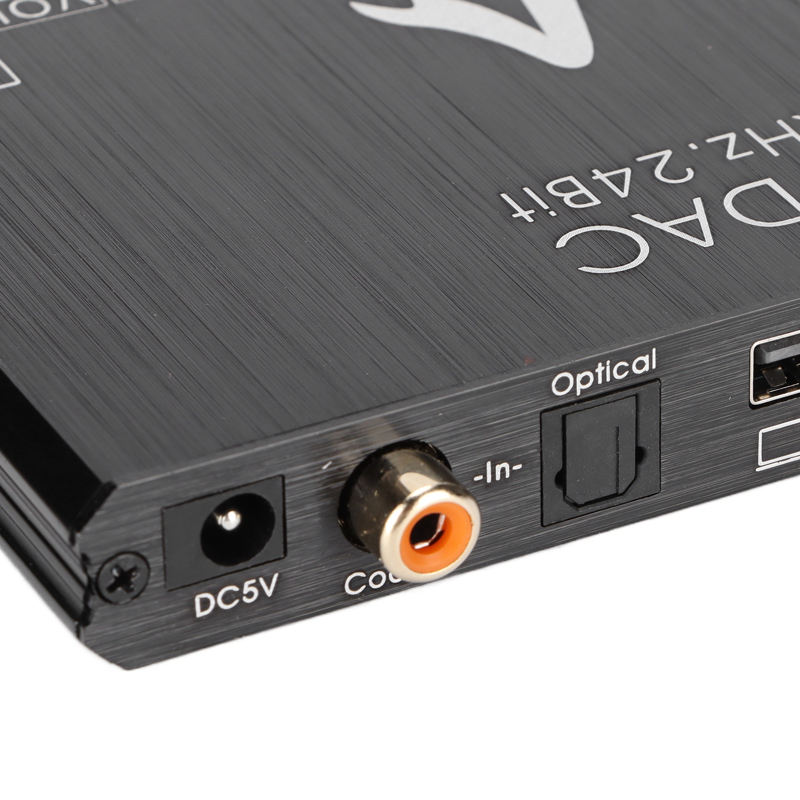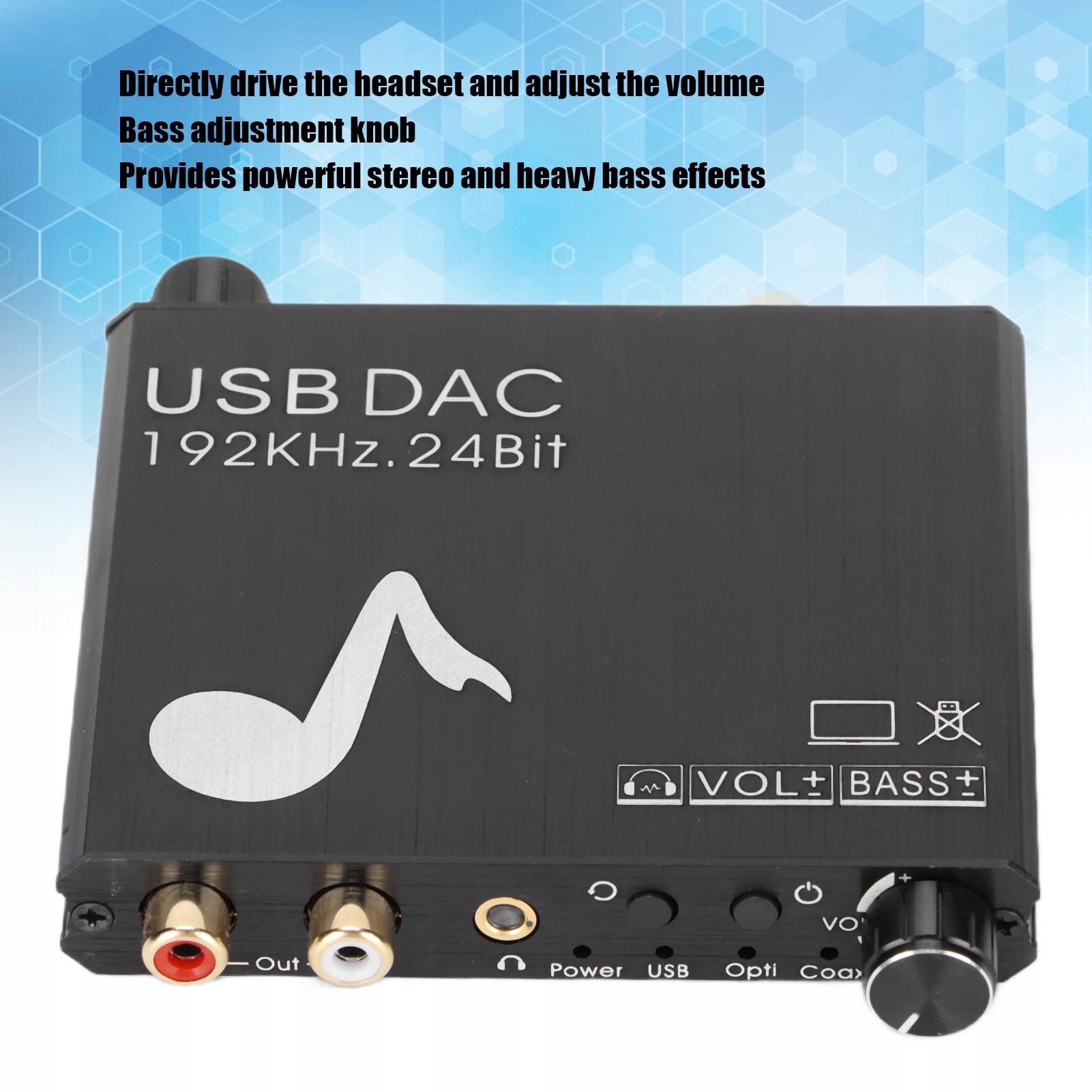 1. 24-бітний цифровий аналог-конвертер аудіо 192 кГц (налаштування басів та звукова карта USB) аудіо перетворювач DAC перетворює цифрові оптичні або концентричні аудіо-сигнали для аналогового аудіо та 3,5 мм аудіо-розетки. Цей інтерфейс USB підтримує лише формат PCM, а частота відбору проб до 48 кГц/24 біт. Підключіть USB портативного комп'ютера до аудіо перетворювача за допомогою виділеного USB -роз'єму