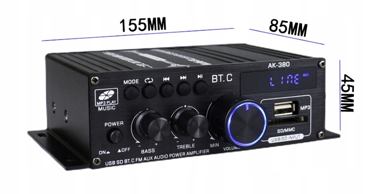 Підсилювач має вхід USB та SD , щоб можна було відтворити mp3 .