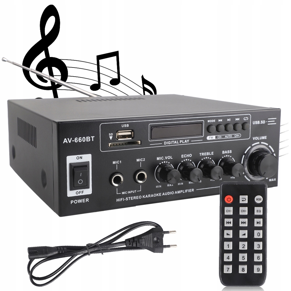 ЦИФРОВИЙ ПІДСИЛЮВАЧ ПОТУЖНОСТІ ЗВУКУ BLUETOOTH 5.0 З ДИСТАНЦІЙНИМ ПУЛЬТОМ